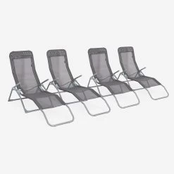 Pratiques, ces chaises longues sont pliantes et légères pour être rangées facilement. Elles sont également solides, car la toile est en textilène. C’est une matière parfaite pour l’extérieur et qui ne s’altère pas avec les intempéries. En plus, la toile s’adapte à la forme de votre corps et le laisse respirer lors des fortes chaleurs. La structure est en acier recouvert d’une peinture époxy gris clair.