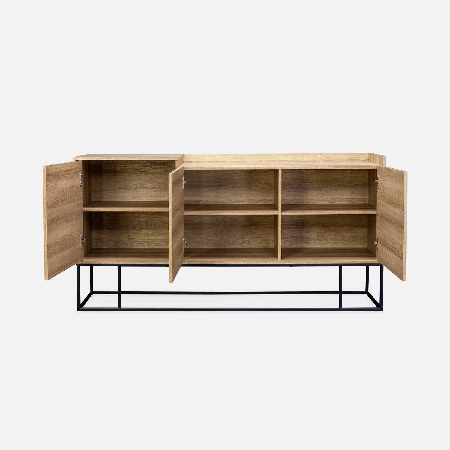 Avec ses 3 étagères et ses 6 espaces de rangement, ce buffet est le meuble parfait pour ranger des jeux de sociétés, du linge de table ou encore des dossiers par exemple. Fonctionel et facile à ouvrir, ce meuble est à multi-usage: vous pouvez très bien y exposer de la décoration ou y poser votre télévision !