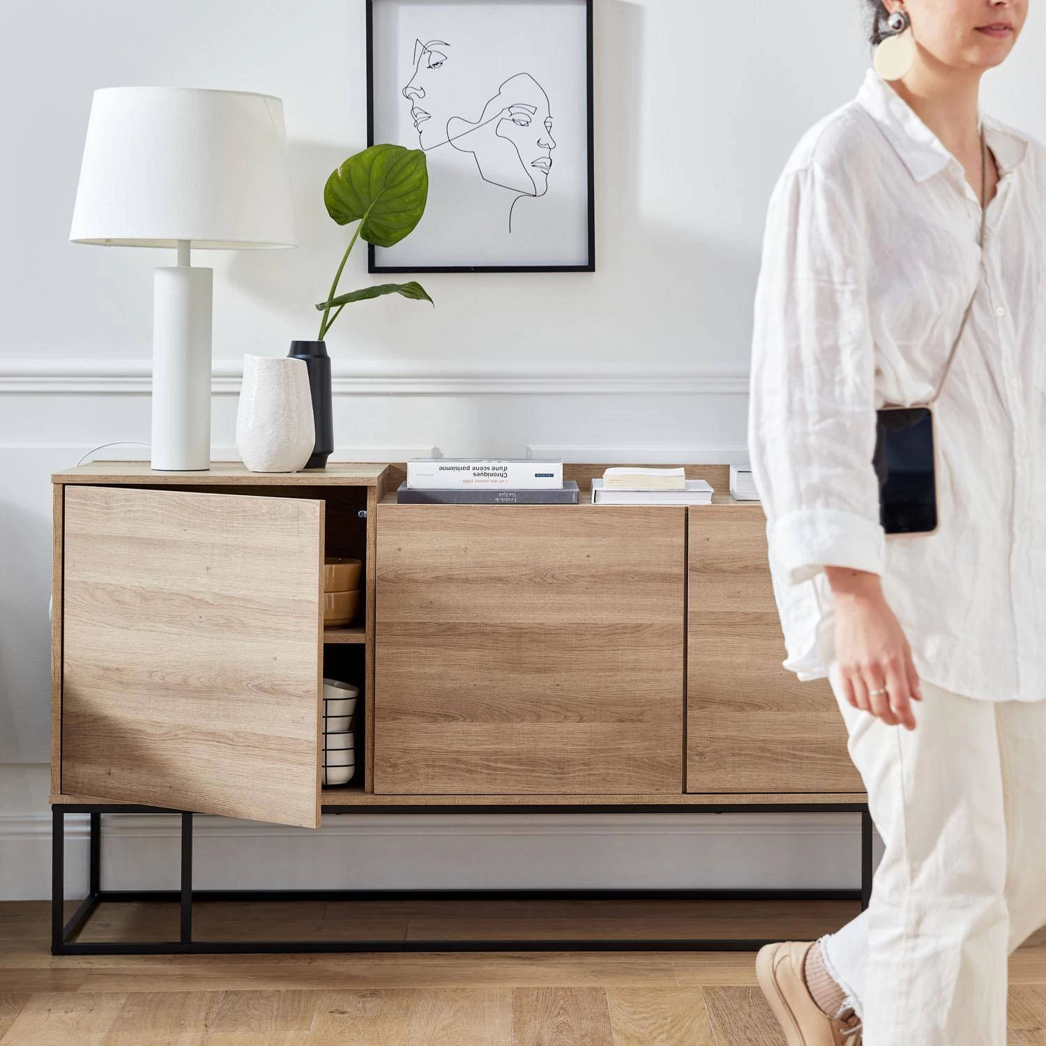 Amateur des meubles au style contemporain ? Ce buffet est fait pour vous ! Un meuble d’intérieur aux lignes fines et travaillées sublimées par des pieds en métal noir qui apportent une touche industrielle à l’ensemble: idéal pour meubler votre intérieur de façon moderne.