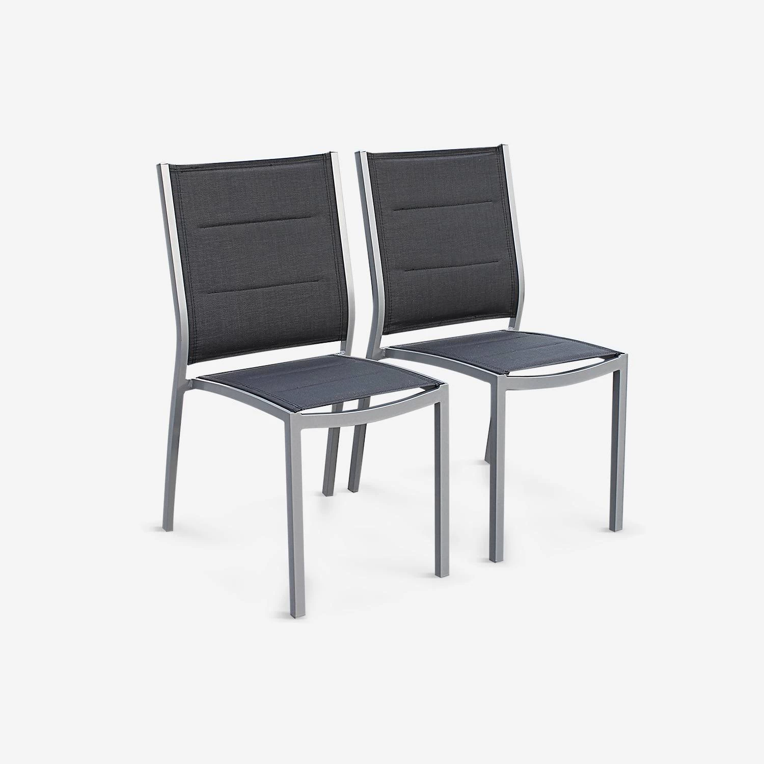 Ces chaises compatibles avec les ensemble Chicago et Odenton sont modernes et élégantes. Elles sont fabriquées en aluminium et textilène. Ce sont deux matériaux de qualité, parfaits pour un usage extérieur. Le textilène ne souffre pas des intempéries. Il est confortable et s’adapte au corps de la personne assise dessus. L’aluminium ne rouille pas avec la pluie. Pratiques, ces chaises s’empilent et prennent place aussi bien à l’intérieur qu’à l’extérieur, grâce à leur design épuré, de plus, elles s’entretiennent très facilement.