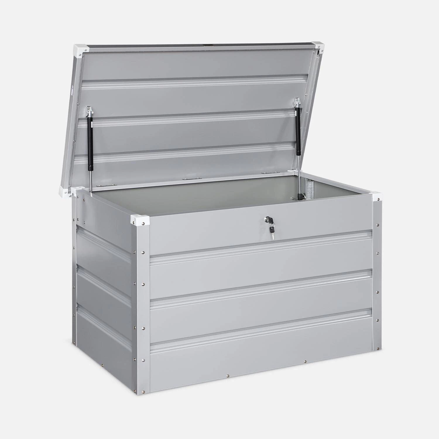 285L de rangement pour ranger ce qui ne se range pas ailleurs ! Coussins, jeux, plaids, outils il y a de la place. Robuste et légère, métal parvient à résister à la pluie et aux rayon du soleil en plus d’habiller votre extérieur. C’est le coffre de rangement idéal pour mettre de l’ordre dans votre jardin.