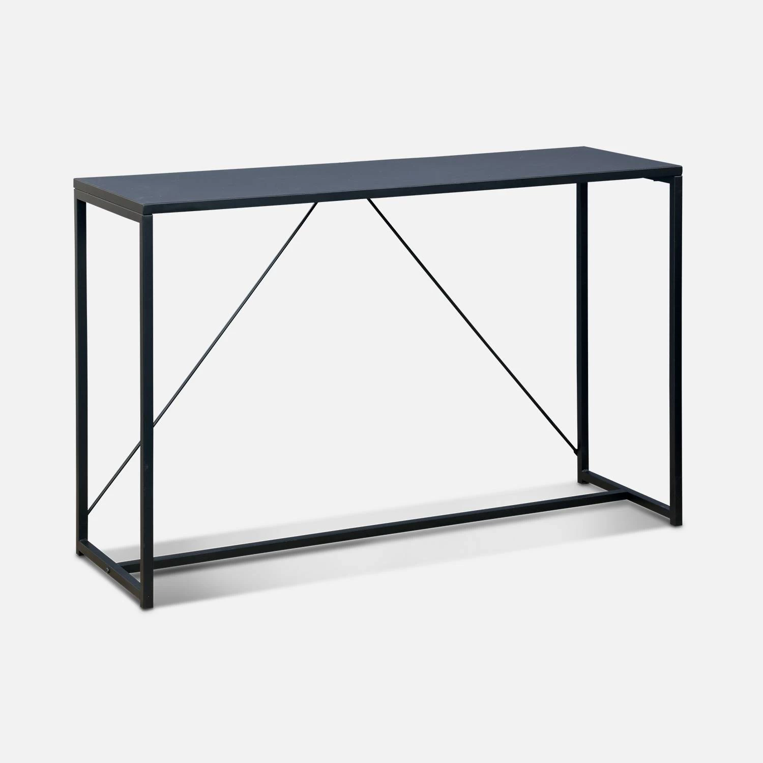 Cette console aux lignes épurées et minimalistes ravira les adeptes de la décoration industrielle. C’est un meuble à la fois simple et design qui apportera élégance et modernité dans votre intérieur. La structure en métal et la barre de renfort en font un meuble de rangement durable et solide.