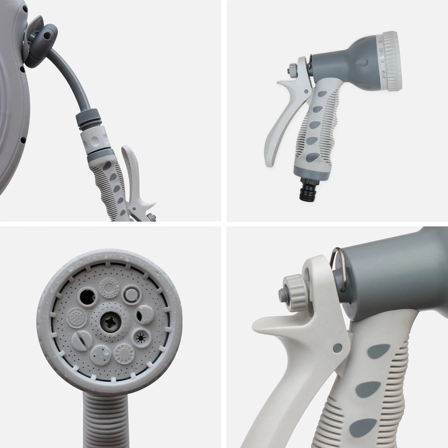 Le pistolet multi-jets dont il est doté vous propose 9 jets différents. Par ailleurs, le guide tuyau intégré permet d’éviter les nœuds. Lorsque vous avez fini d’utiliser votre tuyau d’arrosage, l’enroulement automatique se fait en toute sécurité, car sa rétractation est lente.