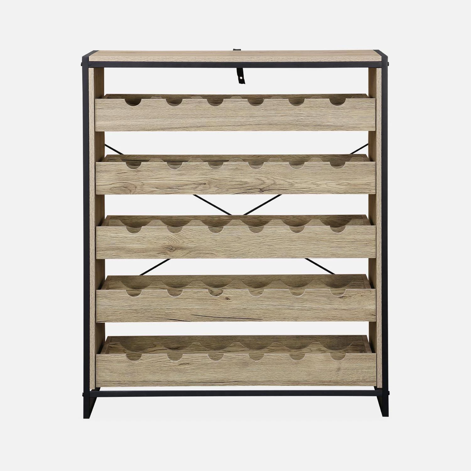 Ce meuble a été imaginé dans le but de ranger vos bouteilles. Sa structure industrielle et ses décors authentiques couleur bois offriront de la modernité à votre cuisine, cellier ou cave. Si vous êtes amateur de bon vin et que vous aimez les savoir bien ranger, ce meuble très fonctionnel est la pièce qu’il vous faut absolument !