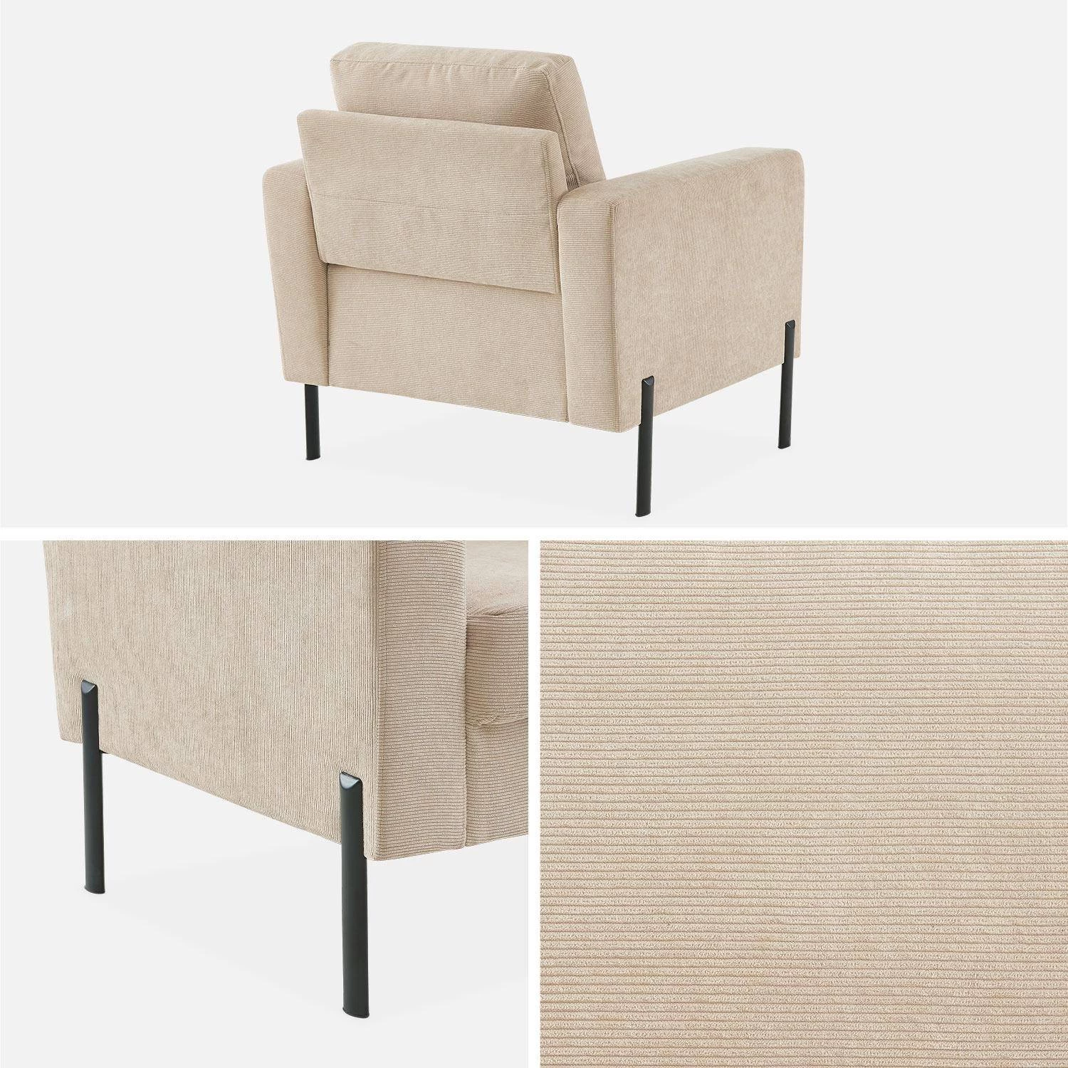 Intemporel, ce fauteuil habillera votre intérieur avec style. Son assise ferme et profonde, son dossier épais et ses larges accoudoirs vous assureront un confort optimal. Doté d’un revêtement en velours côtelé, il a un look chaleureux que vous n’allez plus vouloir quitter !