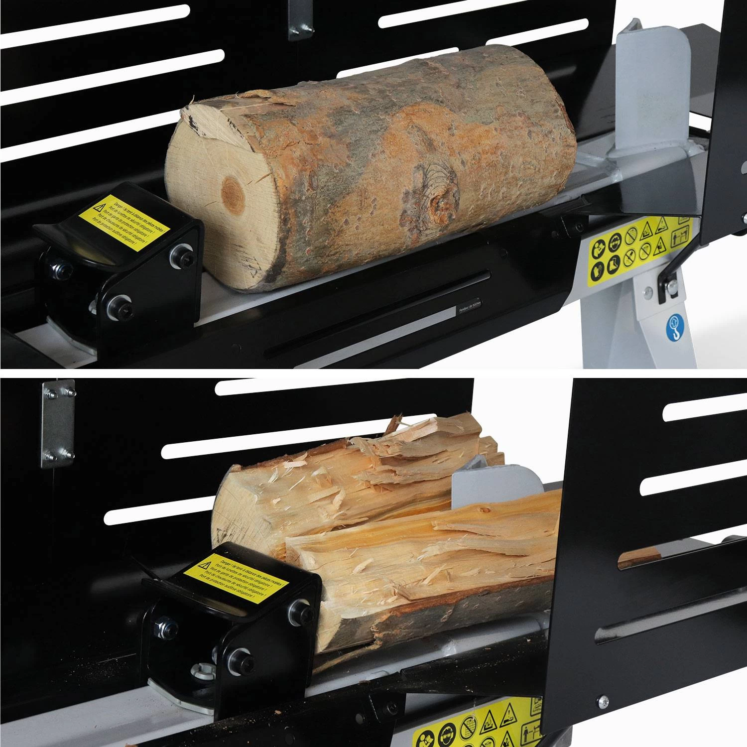 Ce fendeur de bûches permet de fendre les bûches efficacement et en toute sécurité. Cet outil puissant a une poussée constante de 6 tonnes. Avec sa structure horizontale et l’axe d’appui étant bas, vous pourrez fendre les bûches lourdes sans avoir à les soulever. Il peut fendre des bûches jusqu’à 25cm de diamètre et jusqu’à 52cm de long.