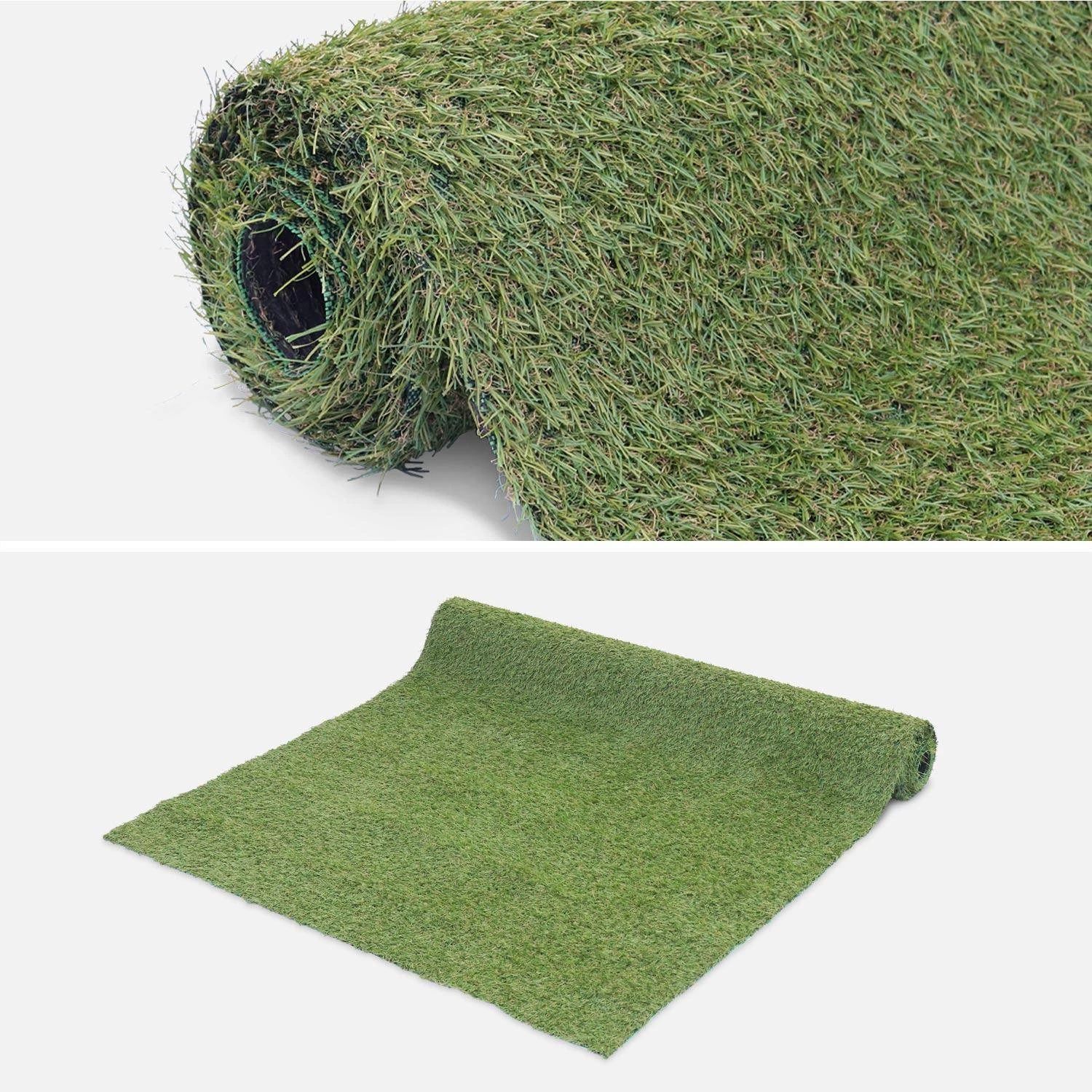 Si l’entretien de votre pelouse vous demande trop d’effort ou bien que vous souhaitez simplement ajouter une touche de nature à votre balcon, cours ou terrasse, ce faux gazon est fait pour vous ! Très réaliste grâce à ses brins de plusieurs couleurs : vert émeraude, vert citron et beige, vous aurez l’impression d’avoir du vrai gazon. L’association des couleurs assure un rendu naturel et réaliste ! Vendu en rouleau, vous n’aurez aucun problème à le poser. Simplifiez-vous la vie, et adoptez notre gazon synthétique Condor !