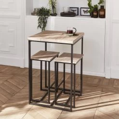 Table à Manger Bois Et Métal, 190cm + 2 Fauteuils Et 4 Chaises En Rotin Naturel