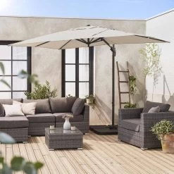 De forme rectangulaire, le parasol Antibes 2 x 3 m est très moderne. Pratique, il se manipule aisément grâce à la manivelle anti-retour, à la poignée d’inclinaison et à la pédale de rotation dont il est doté. En plus, il s’adapte à vos besoins car il est inclinable et rabattable, une fois ouvert. Bien pensé, Antibes est muni d’un auvent sur le sommet qui favorise la circulation de l’air. Son pied en forme de croix doit être fixé dans un sol dur ou lesté avec des dalles dédiées.