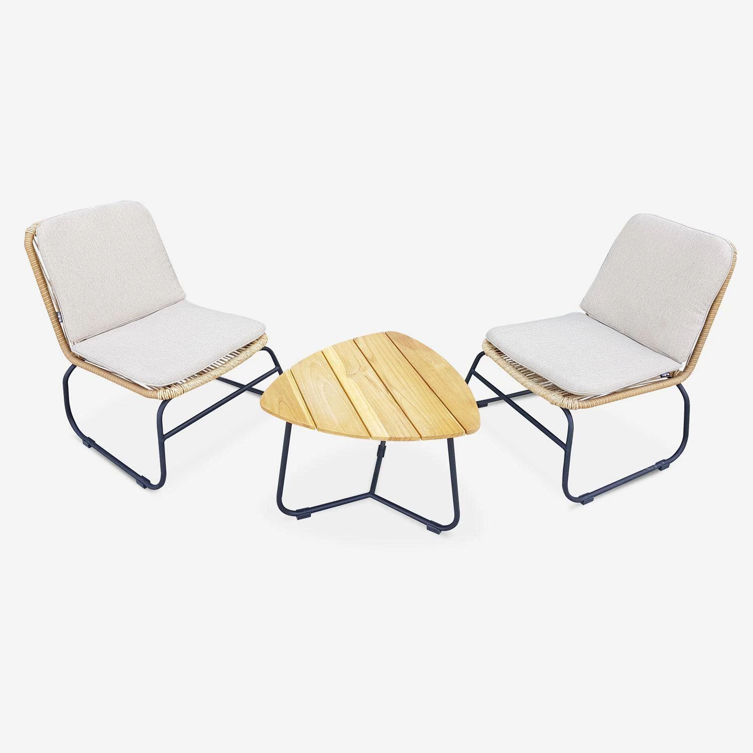 Les chaises sont basses et munies de coussins confortables et déhoussables. Elles font de cet irrésistible salon de jardin un compagnon idéal pour la détente.