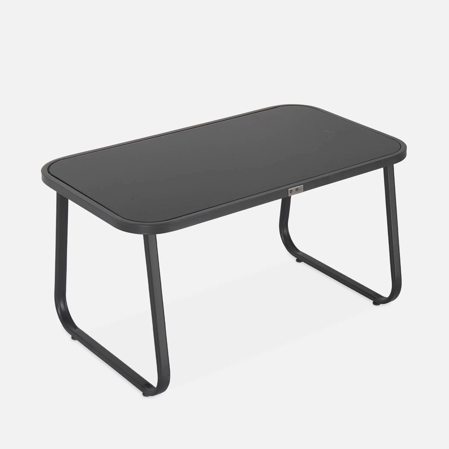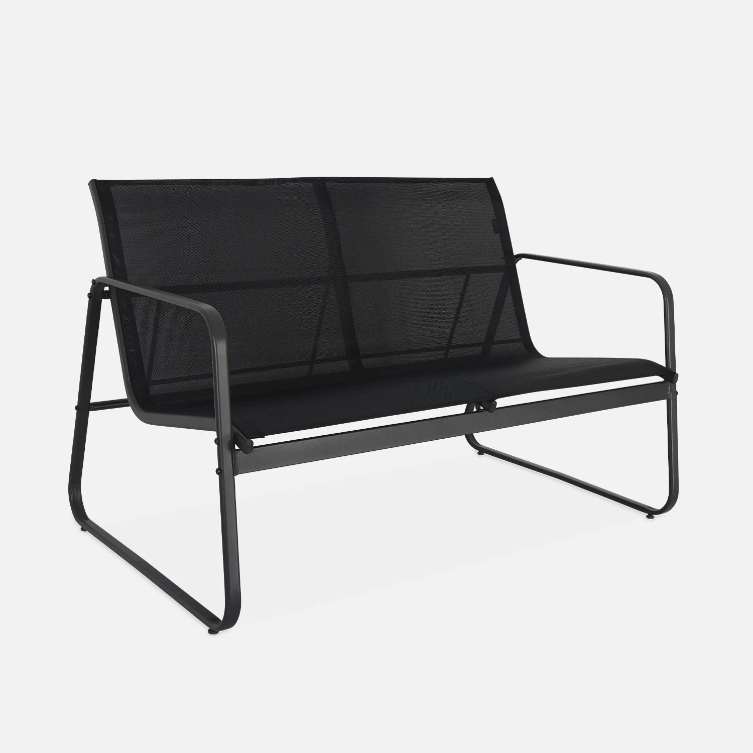 Vous allez aimer lézarder sur votre terrasse avec ce salon de jardin au charme industriel. 4 personnes peuvent s’asseoir sur ce salon qui se compose d’un canapé et de 2 fauteuils. La table basse assortie vous permettra de passer de bons moments conviviaux. On aime ses lignes contemporaines et son style épuré qui donneront une touche de modernité sur votre terrasse. Le salon de jardin Silvi allie une structure en métal et des assises en textilène robuste. Avec sa petite taille, il est parfait pour les petites terrasses ou pour les balcons.