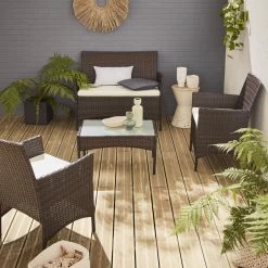 Le salon de jardin Moltès convient très bien aux petites surfaces. Il est tendance, et peu encombrant. Son prix très accessible est son grand point fort. Il permet à tout le monde d’équiper sa terrasse avec un produit esthétique et de qualité. Conçu en résine tressée, le Moltès est moderne et s’adapte à tous les styles de terrasse. Il s’intègre aussi bien en intérieur qu’en extérieur.