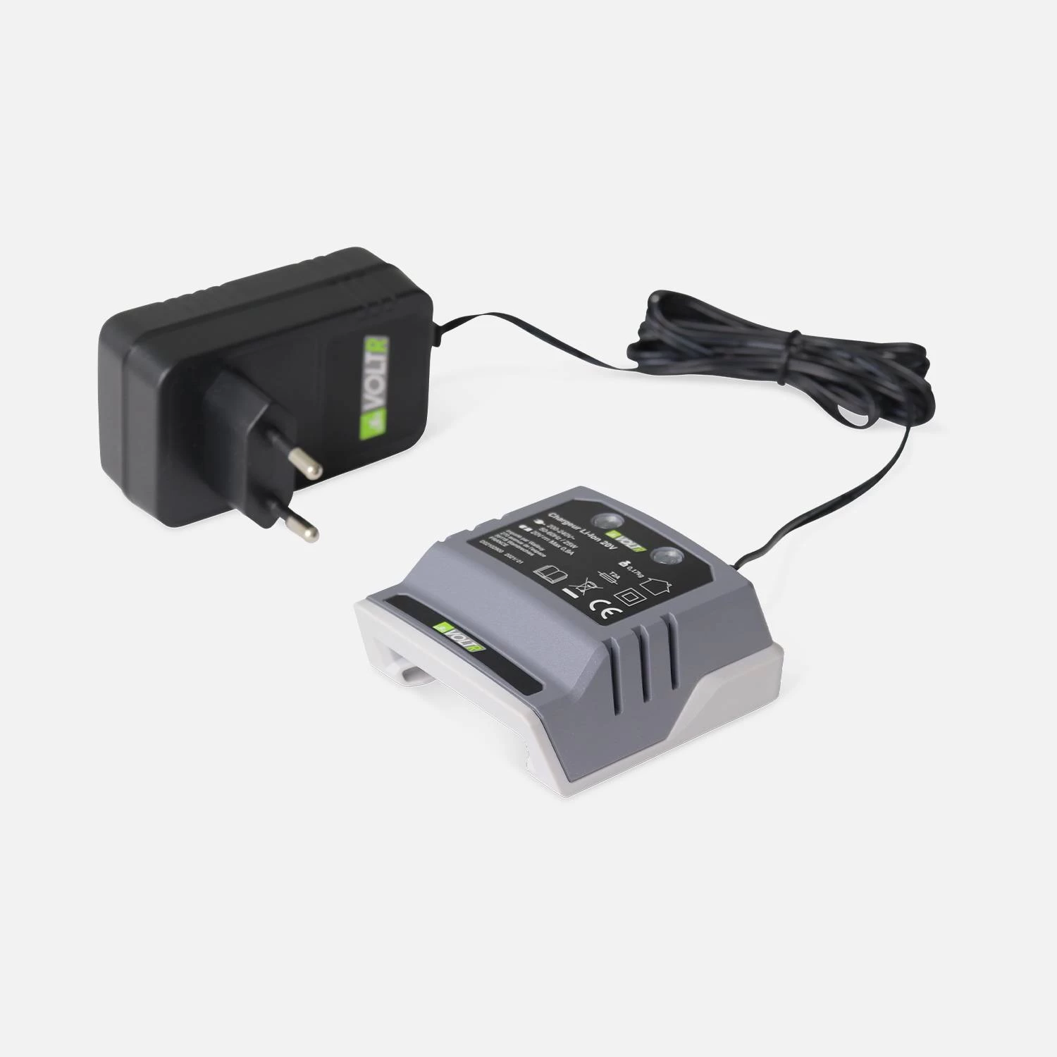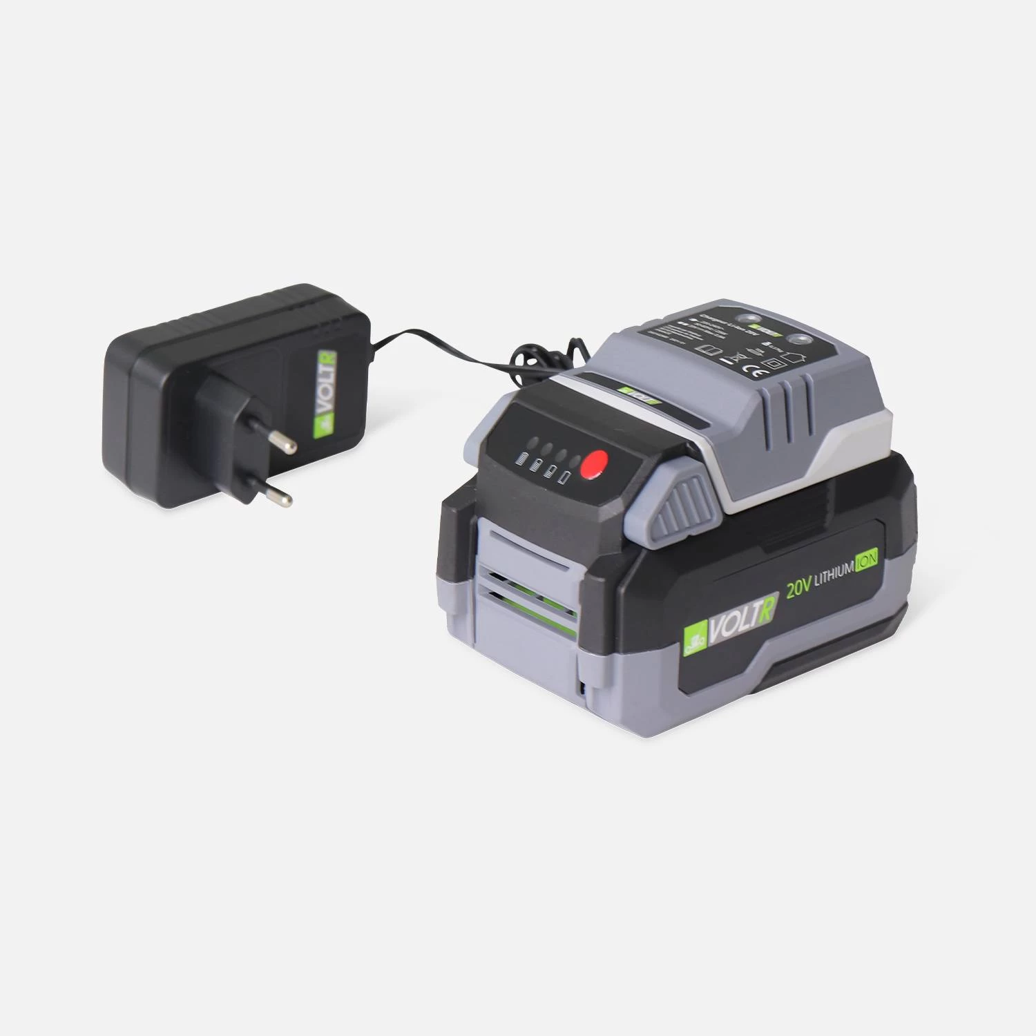 La batterie est fabriquée à partir de composants Lithium-Ion. C’est un gage de longévité et de qualité. En effet, les batteries Li-Ion apportent une puissance immédiate et continue, sans faiblir. Lorsque la batterie est déchargée, le souffleur s’arrêtera directement, sans signes de faiblesse au préalable. Alors, l’accumulateur est équipé d’un témoin LED qui permet de connaitre le niveau de charge de la batterie, à tout moment. Autre avantage de ce type de batteries, elles peuvent se recharger n’importe quand car il n’est pas utile d’attendre qu’elles soient vidées entièrement. La batterie est compatible avec les autres appareils 20V de la marque VOLTR. Avant la première utilisation, il faudra recharger complètement, une première fois, la batterie.