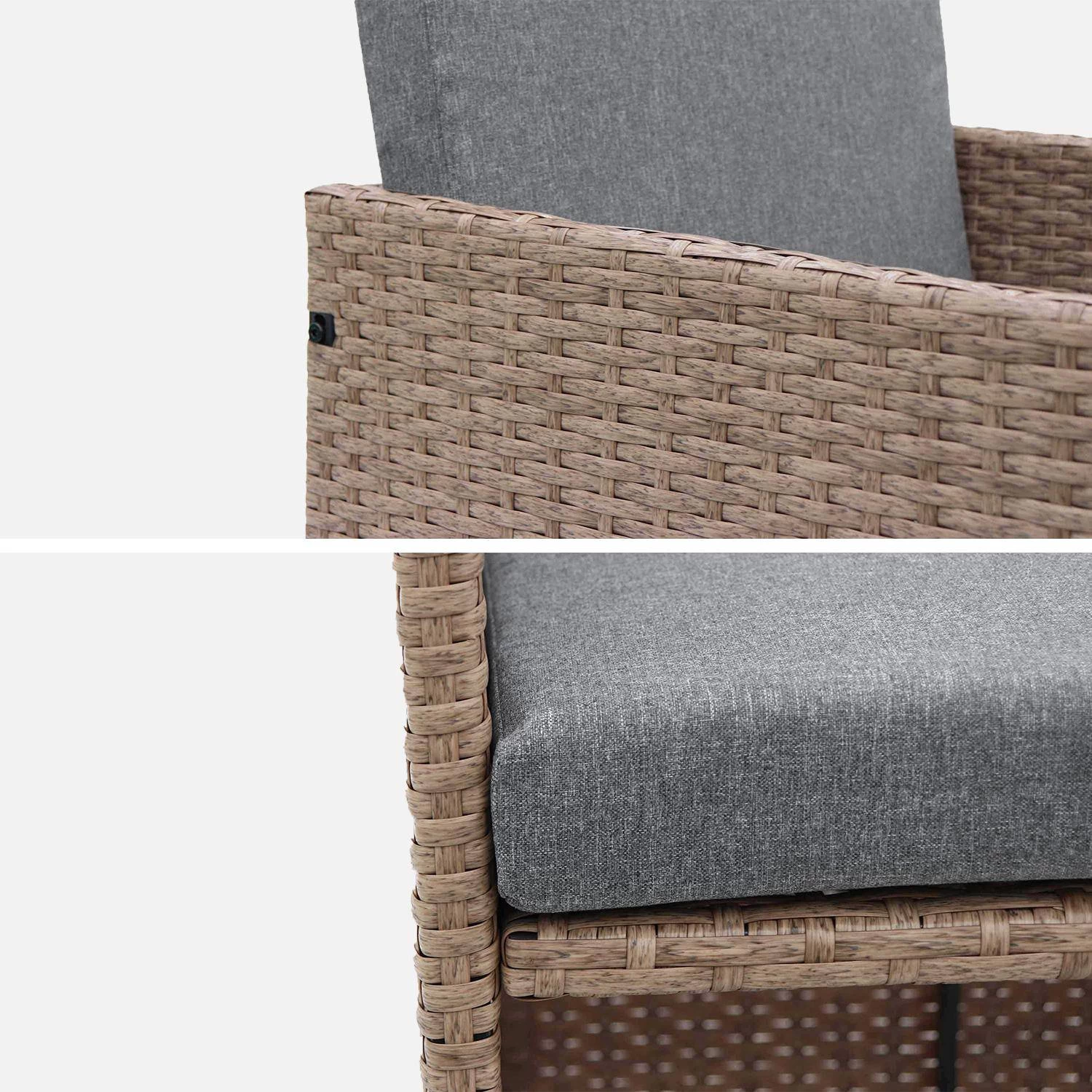 Conçu en résine tressée, le Vabo est très solide. En effet, ce matériau chic et moderne est pensé pour résister aux UV et aux intempéries (pluie, neige, eaux salées). Pour vous garantir longévité, la structure métallique de cet ensemble de jardin est en acier galvanisé recouvert d’une peinture thermolaquée. Ce traitement offre une plus grande protection contre l’oxydation de l’acier. Les coussins (5,5cm) sont déhoussables et résistants à l’eau. Le plateau de la table est en verre trempé, 5mm d’épaisseur. C’est un verre 5 fois plus solide que le verre traditionnel.
