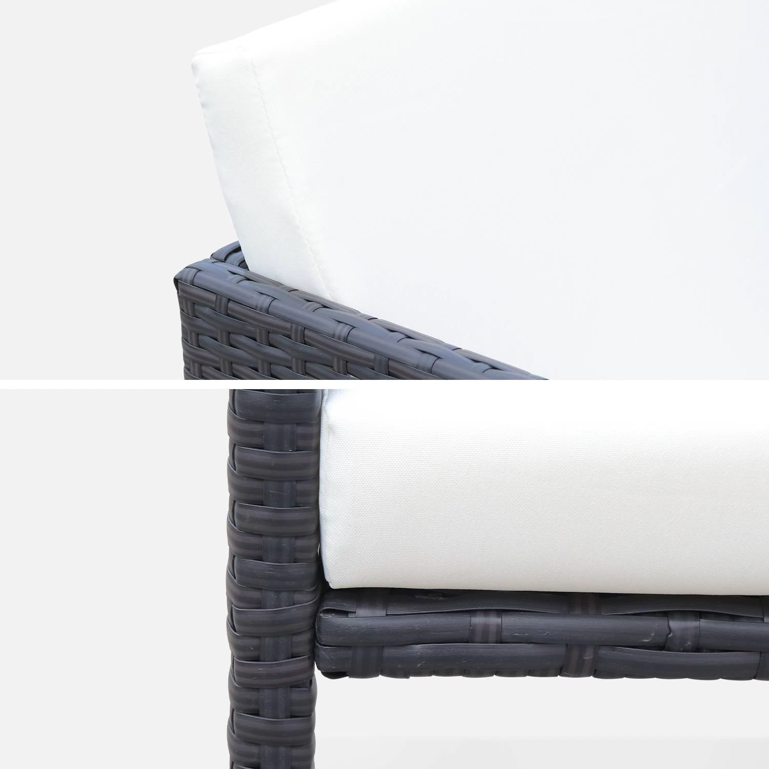 Voici un salon de jardin en résine marron pour 6 personnes. Ce salon prend très peu de place lorsqu’il n’est pas utilisé car il est encastrable, et vous pouvez même y laisser les coussins lors du beau temps. La structure en acier galvanisé permet d’obtenir un salon de jardin léger, facile à bouger, notamment les chaises qui sont en plus dotées de poignées. De plus, cette matière est robuste et non corrosive. Dans une question d’esthétique, la structure est également recouverte de résine plate. Les trois verres trempés, de 5mm d’épaisseur, apportent une finition élégante à la table.