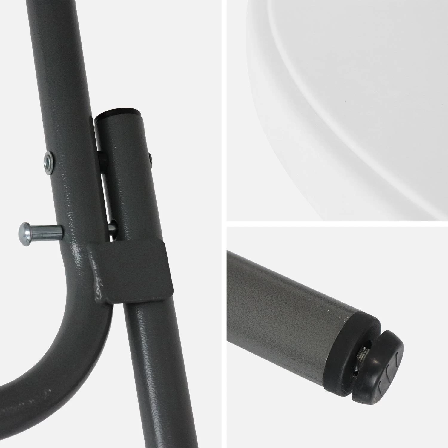 Le plateau est en plastique injecté résistant et facile d’entretien. Avec leur structure en acier recouvert de peinture epoxy, ces tables pliantes sont conçues pour une utilisation en intérieur et en extérieur. Les rebords sont arrondis pour un confort optimal. Elles sont aussi dotées de patins de protection pour le sol.