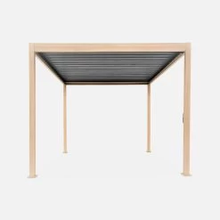 Pergola Bioclimatique Aluminium 3×3 M Lames Orientables Couleur : Bois