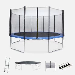 Le trampoline est livré avec une échelle pour monter et descendre sans sauter et donc sans se faire mal. L’échelle est en acier recouvert de peinture époxy grise. Elle est parfaitement adaptée au trampoline de jardin Neptune XXL et se fixe simplement, une fois montée.