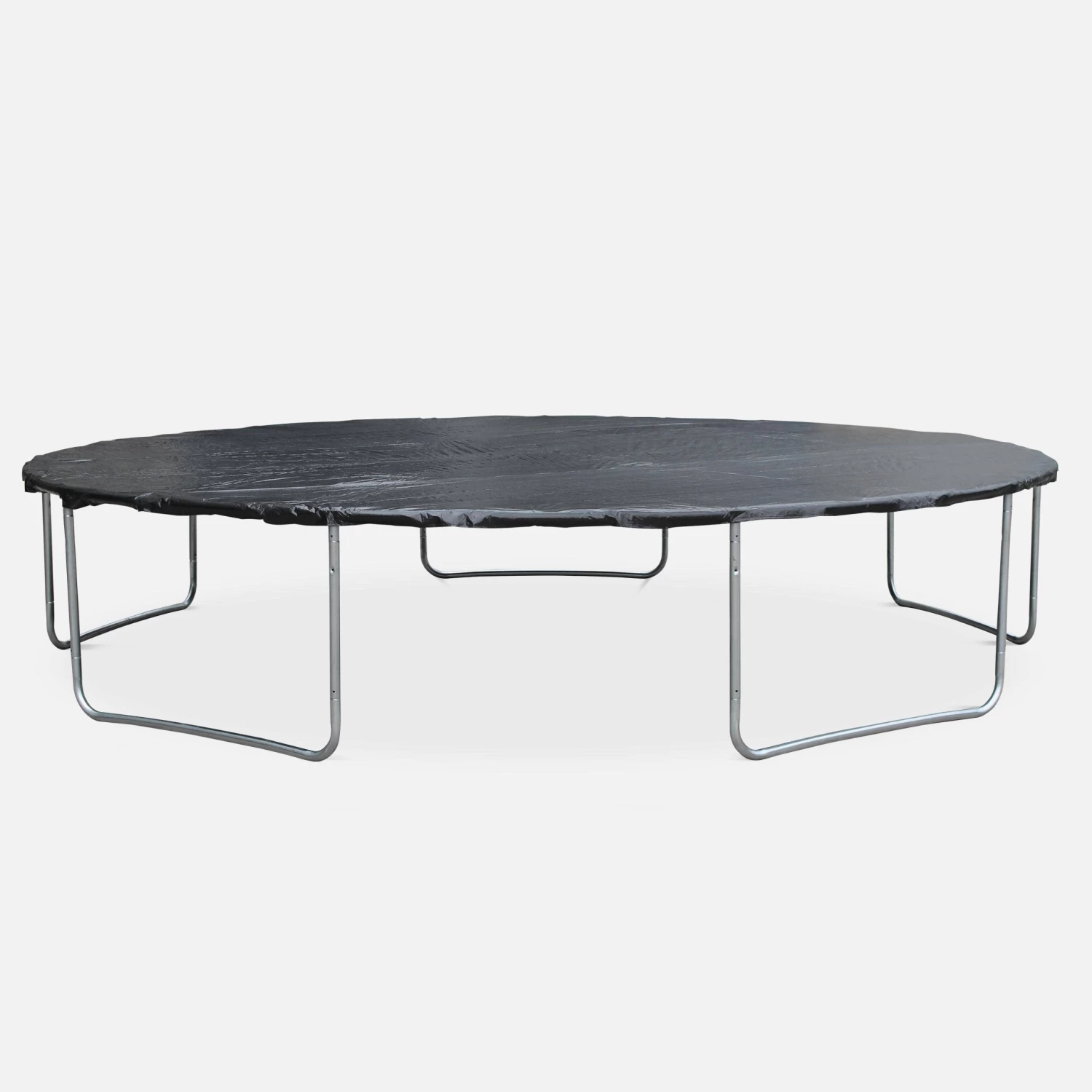 La bâche de protection du trampoline est en polyéthylène noir. Elle est un plus non négligeable pour les trampolines. Elle protège le tapis de saut des poussières, des feuilles et de la décomposition des végétaux. Ainsi, vous n’aurez pas besoin de le nettoyer à chaque coup de vent. Des trous de drainage sont placés au milieu de la bâche pour permettre l’évacuation de l’eau de pluie