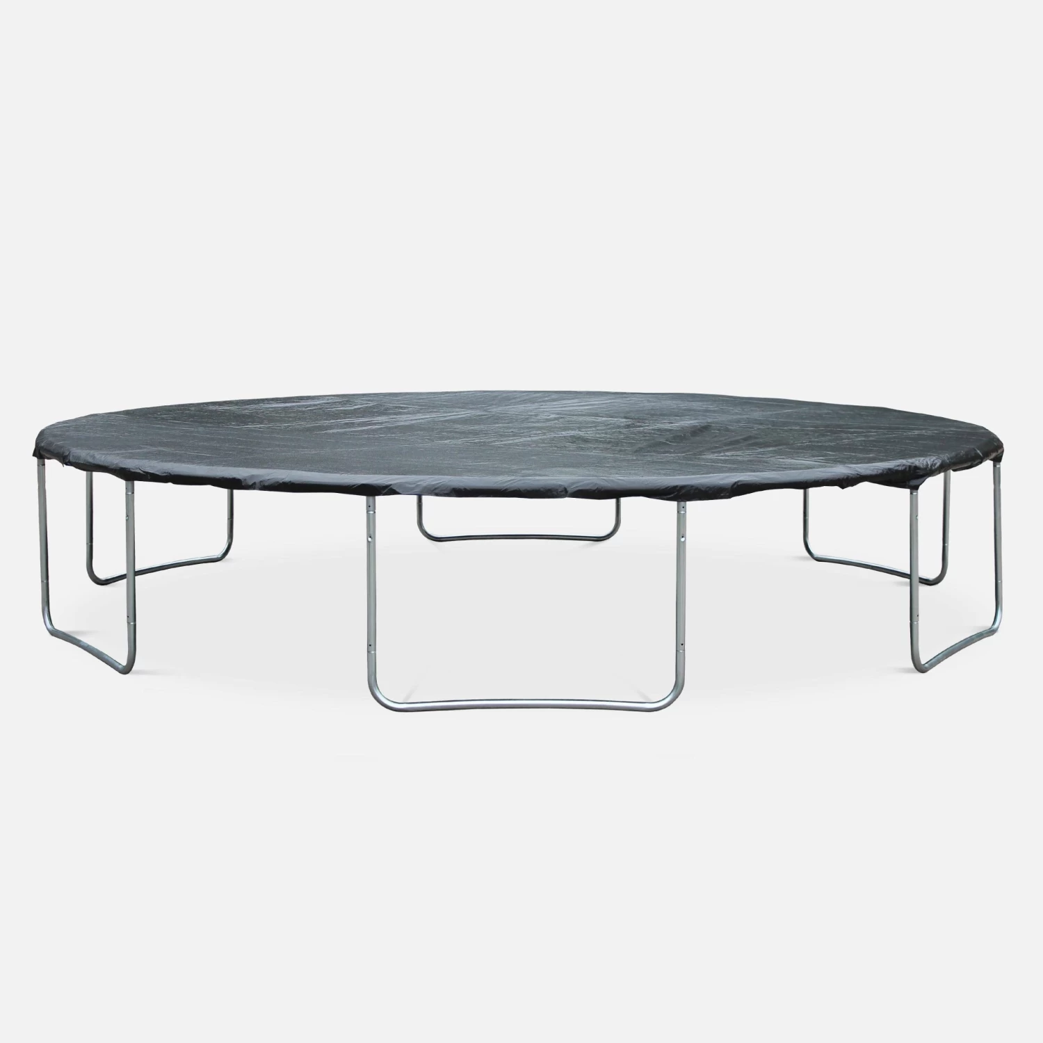 La bâche de protection du trampoline est en polyéthylène noir. Elle est un plus non négligeable pour les trampolines. Elle protège le tapis de saut des poussières, des feuilles et de la décomposition des végétaux. Ainsi, vous n’aurez pas besoin de le nettoyer à chaque coup de vent. Des trous de drainage sont placés au milieu de la bâche pour permettre l’évacuation de l’eau de pluie