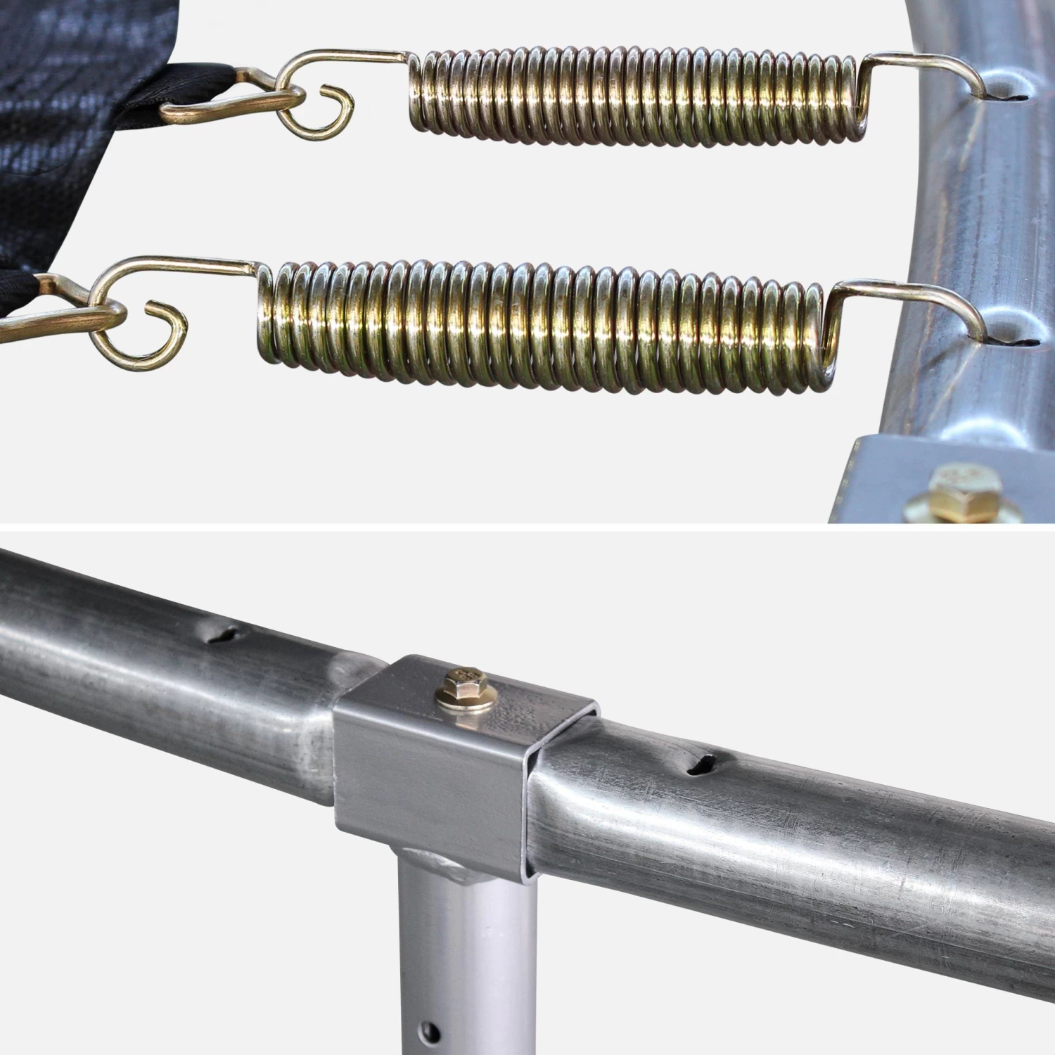 L’épaisseur des tubes joue un rôle primordial pour la solidité de la structure. Ceux du trampoline Jupiter XXL ont un diamètre de 42mm et une épaisseur de 1,4mm.