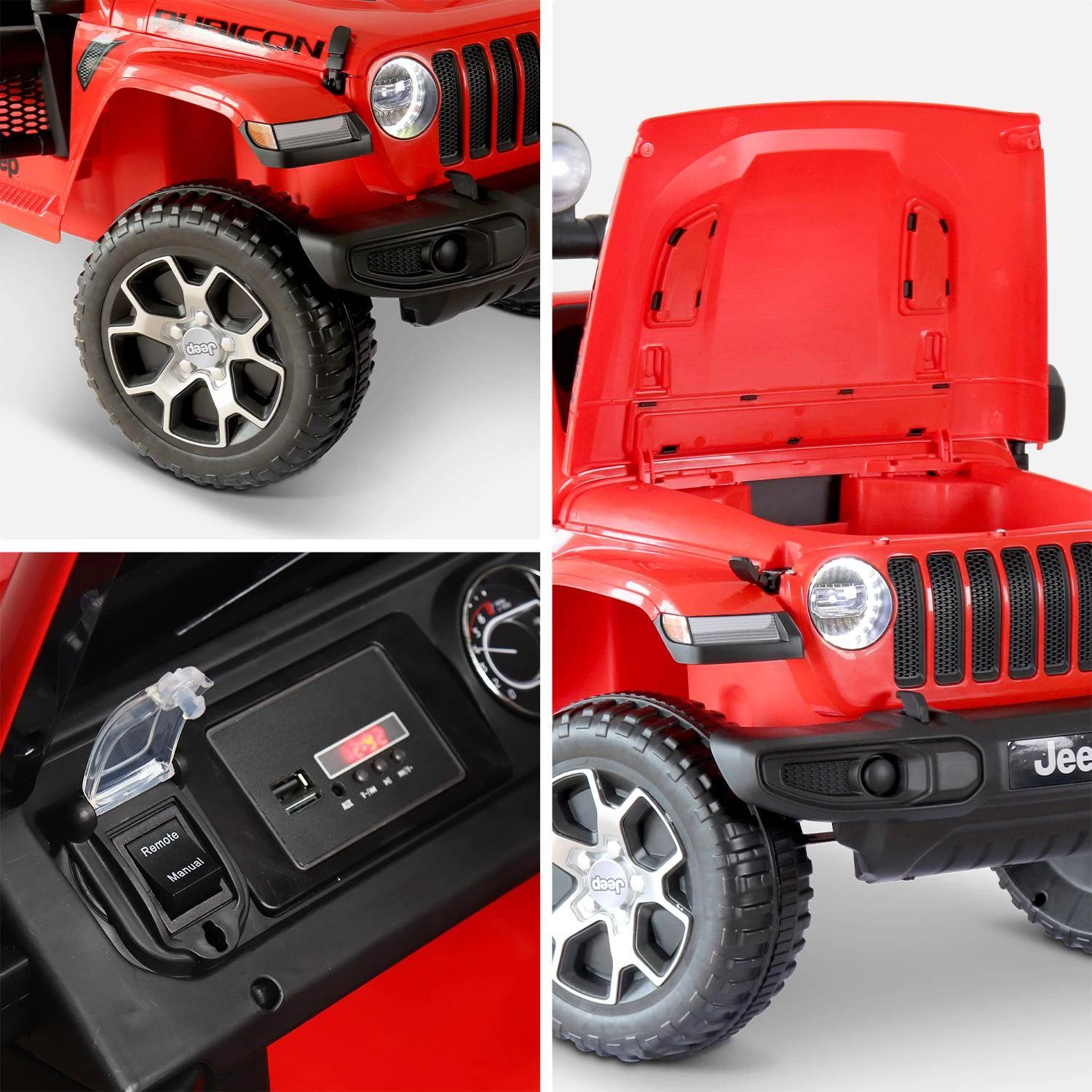 Vos enfants vont s’éclater au volant de cette Jeep Wrangler Rubicon ! Pas d’inquiétude pour les parents, cette voiture est équipée d’une radiocommande parentale. Il est ainsi possible de gérer le freinage, la direction, le sens de marche et la vitesse maximale.