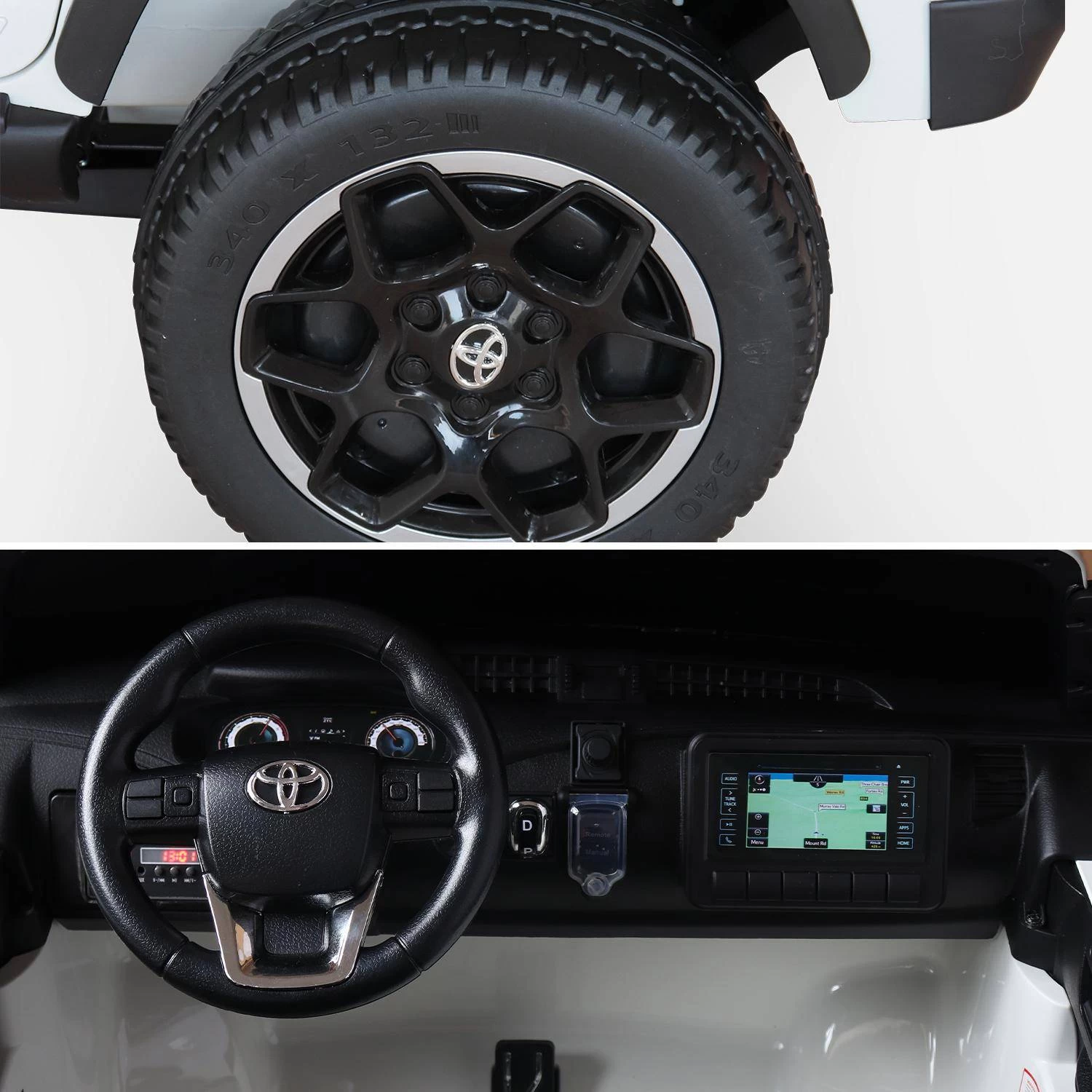 Votre enfant aussi pourra appuyer sur le champignon avec ce 4×4 Toyota Hilux, sous licence officielle ! Il pourra même emmener un de ses amis ou de ses frères et sœurs grâce au siège passager, contrairement aux autres voitures qui ne possèdent qu’un seul vrai siège. De ce fait, la voiture est un peu plus large. Ses capacités ont par ailleurs été revisitées afin d’offrir la meilleure qualité possible : moteur et capacité de la batterie permettent une autonomie plus que suffisante.